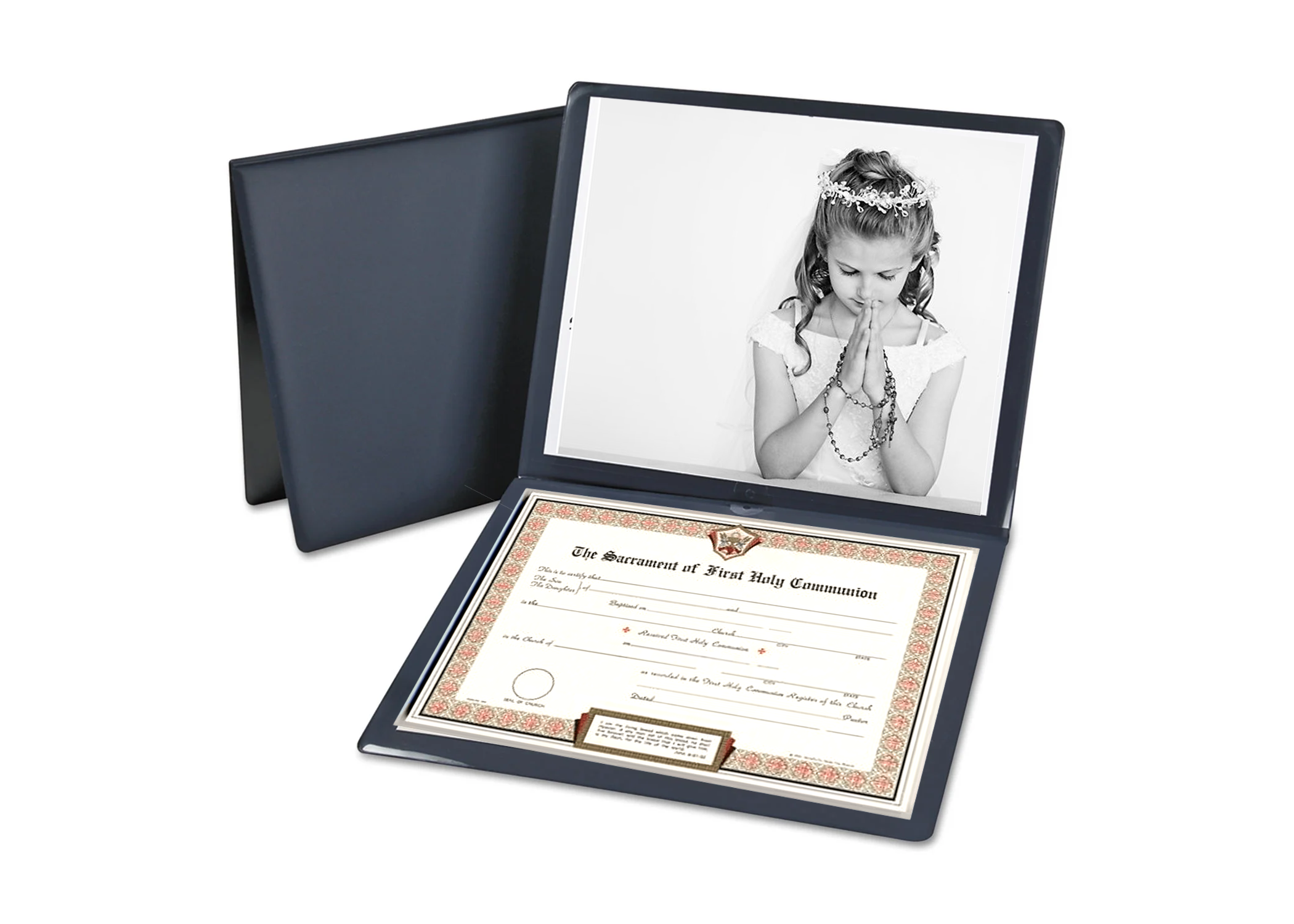 ~ One 8x10 Print of any pose on Matte Paper with diploma cover, Sacrament Document not included. Speak with the Parish office to receive the document